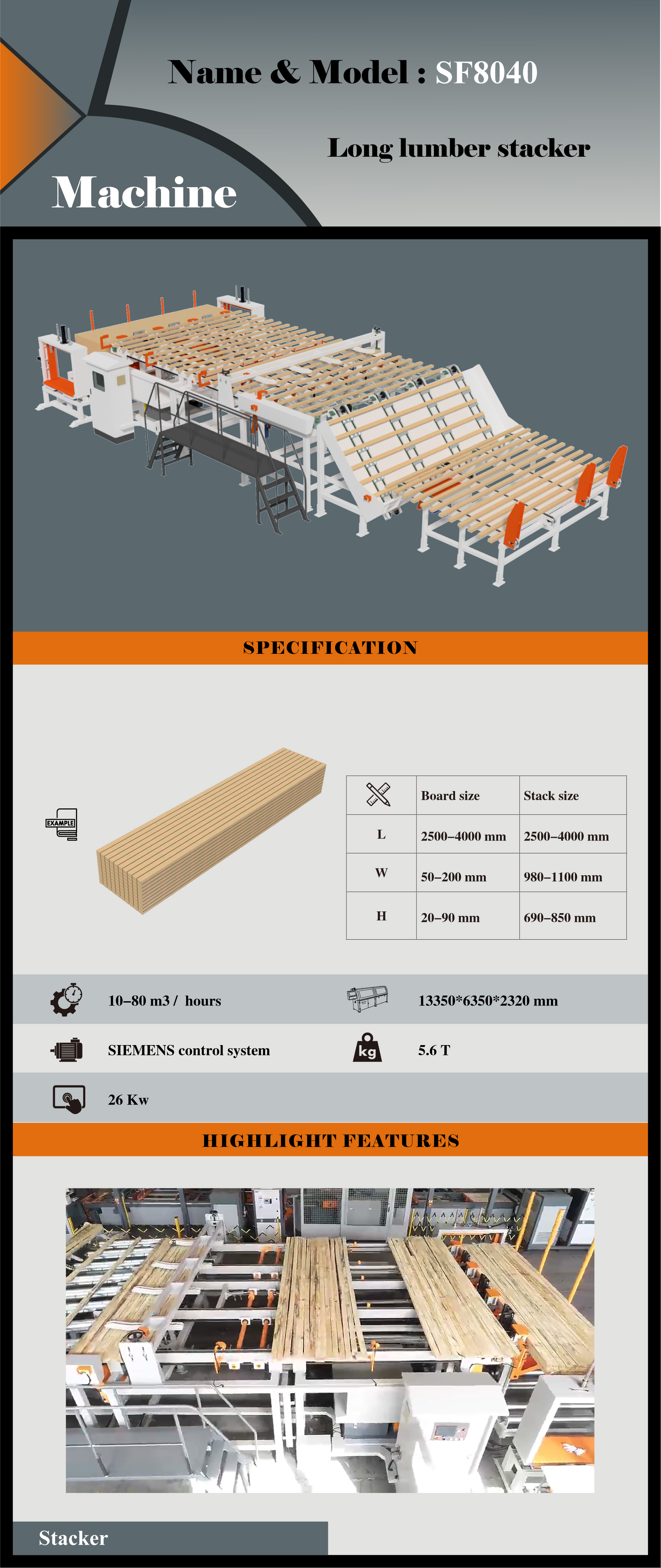 SF8040 Long lumber stacker